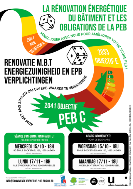 Vous êtes propriétaire à Bruxelles et vous vous posez des questions sur la performance énergétique de votre logement ? Convivence vous invite à une séance d’information ludique, animée par leur service de conseil en rénovation. Deux dates sont prévues le 15/10 et le 17/11.